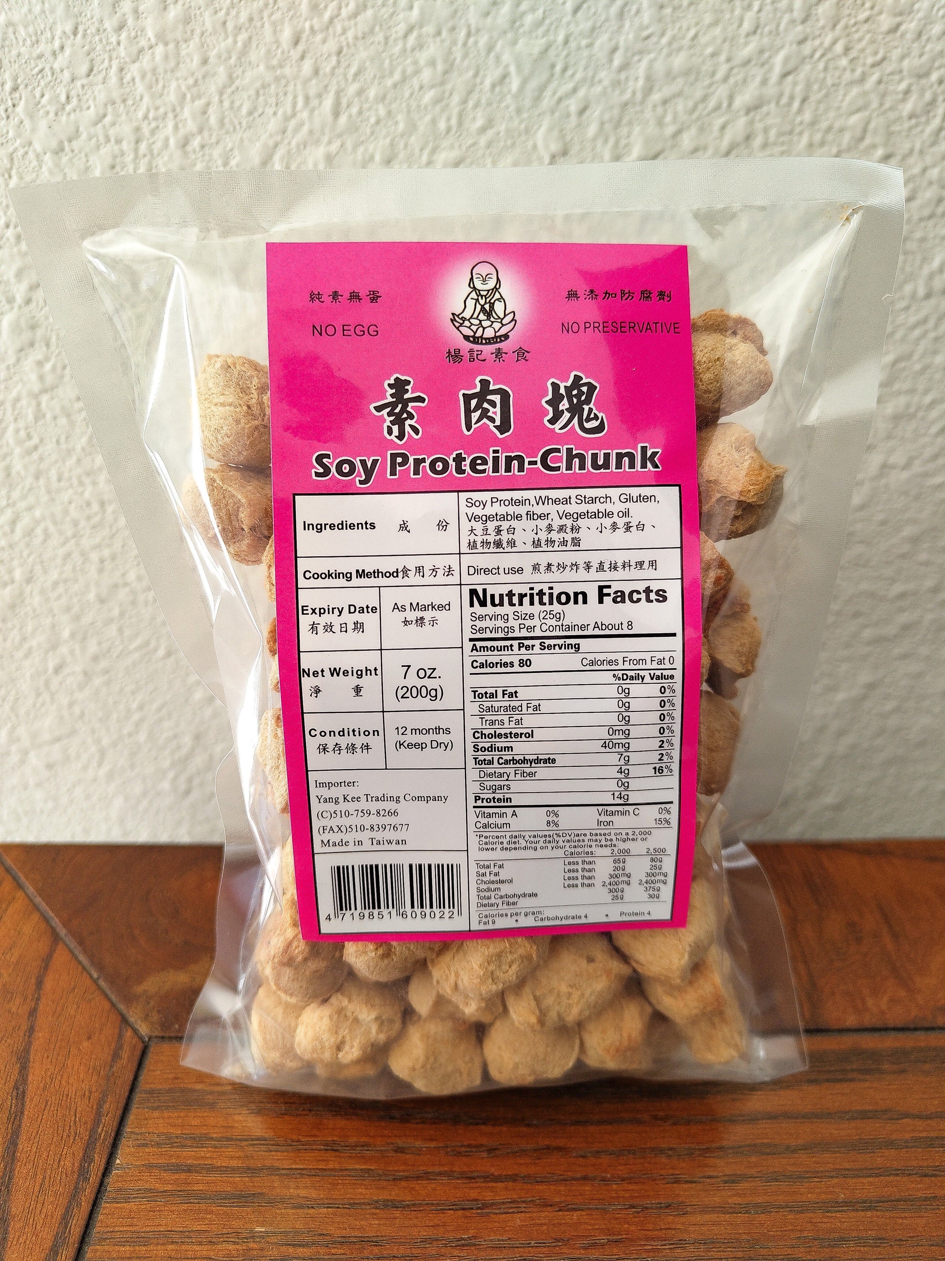 Soy Protein, Wheat Starch, Gluten, Vegetable fiber, Vegetable Oil