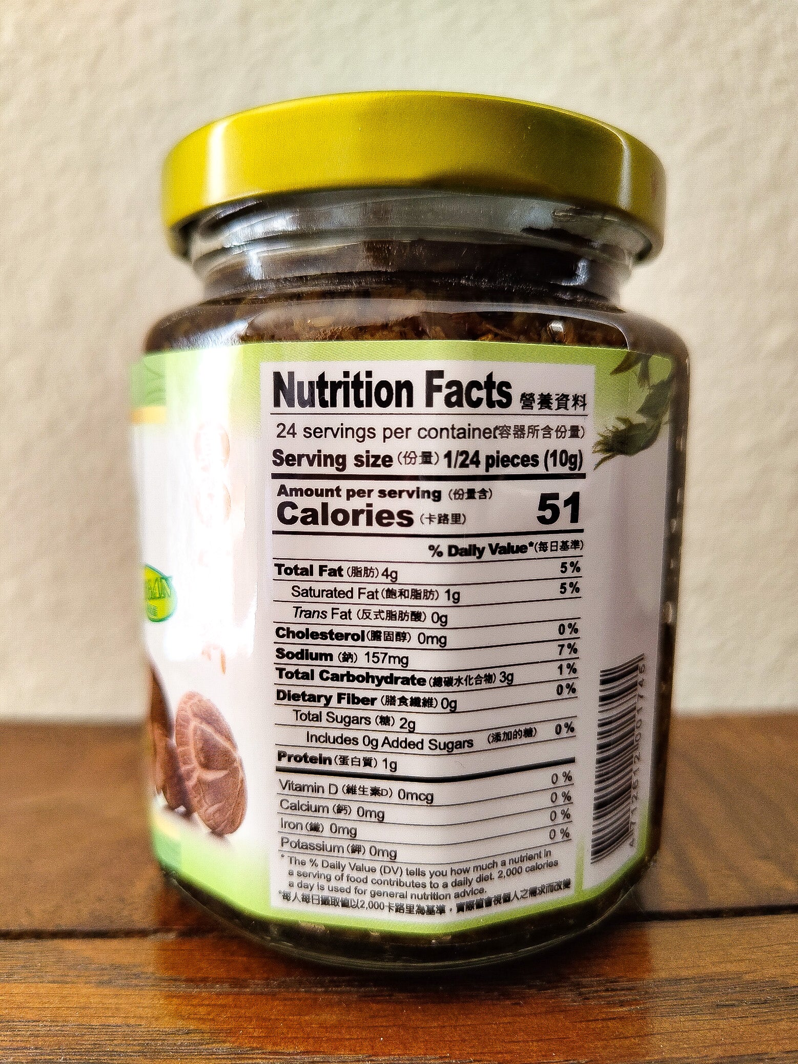 Soybean Oil, Sugar, Soy Protein (Non-GMO), Soybean paste (Black beans soy sauce), Mushroom, Salt, Chinese Cedar, Sweetener (DL Pear Alcohol 70%), Sesame, DL-Sodium Malate, 5'-Hypoxanthine Nuclear Dibasic Sodium Phosphate, 5'-Suboriginal Nuclear Dibasic Phosphate Sodium, Di-Sodium Succinate, DL-Alanyl Propionic Acid and Liquorice Powder