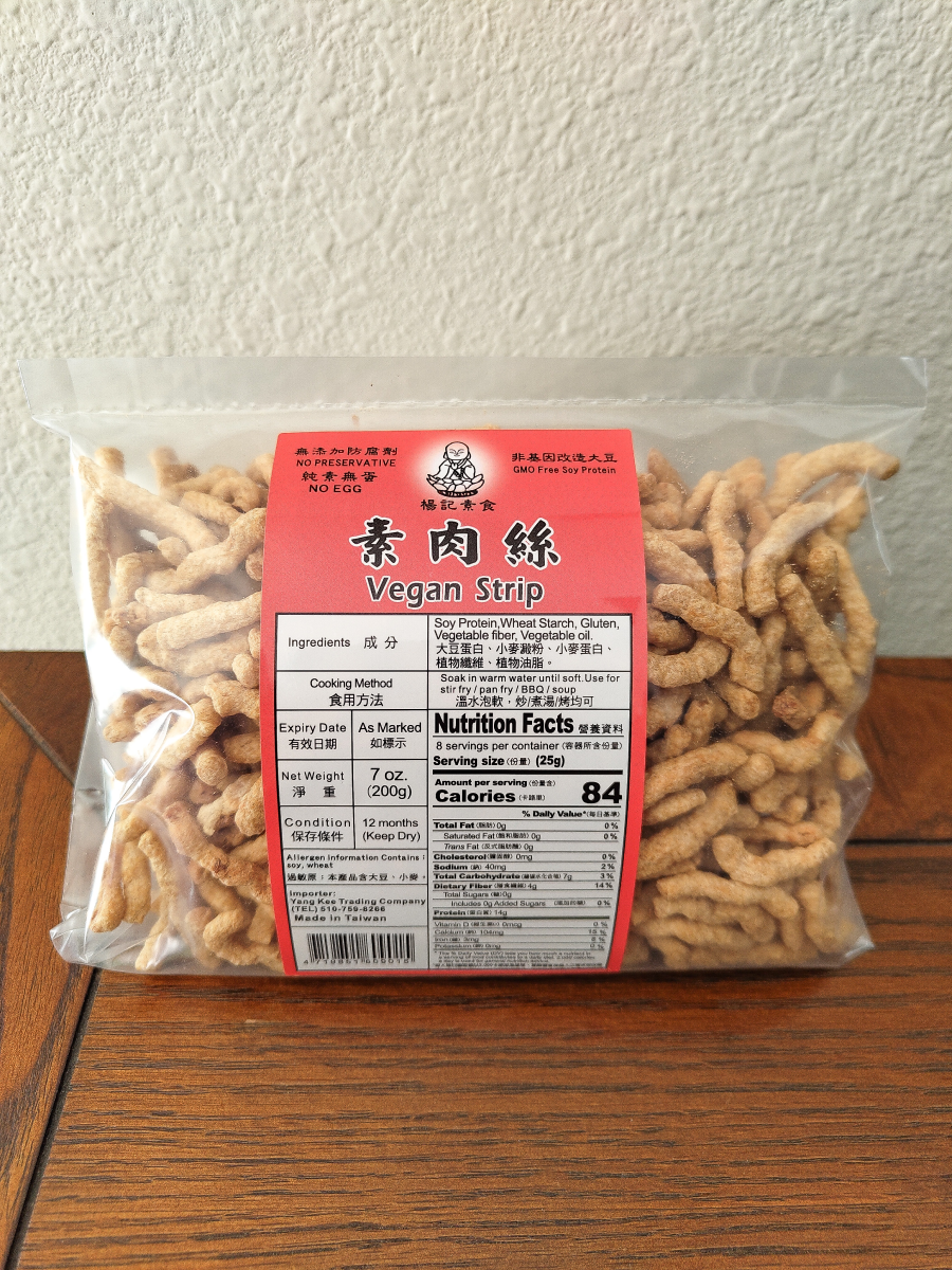 Vegan pork floss, TVP, Fried Gluten: Store in cool, dry location. Avoid direct sunlight.