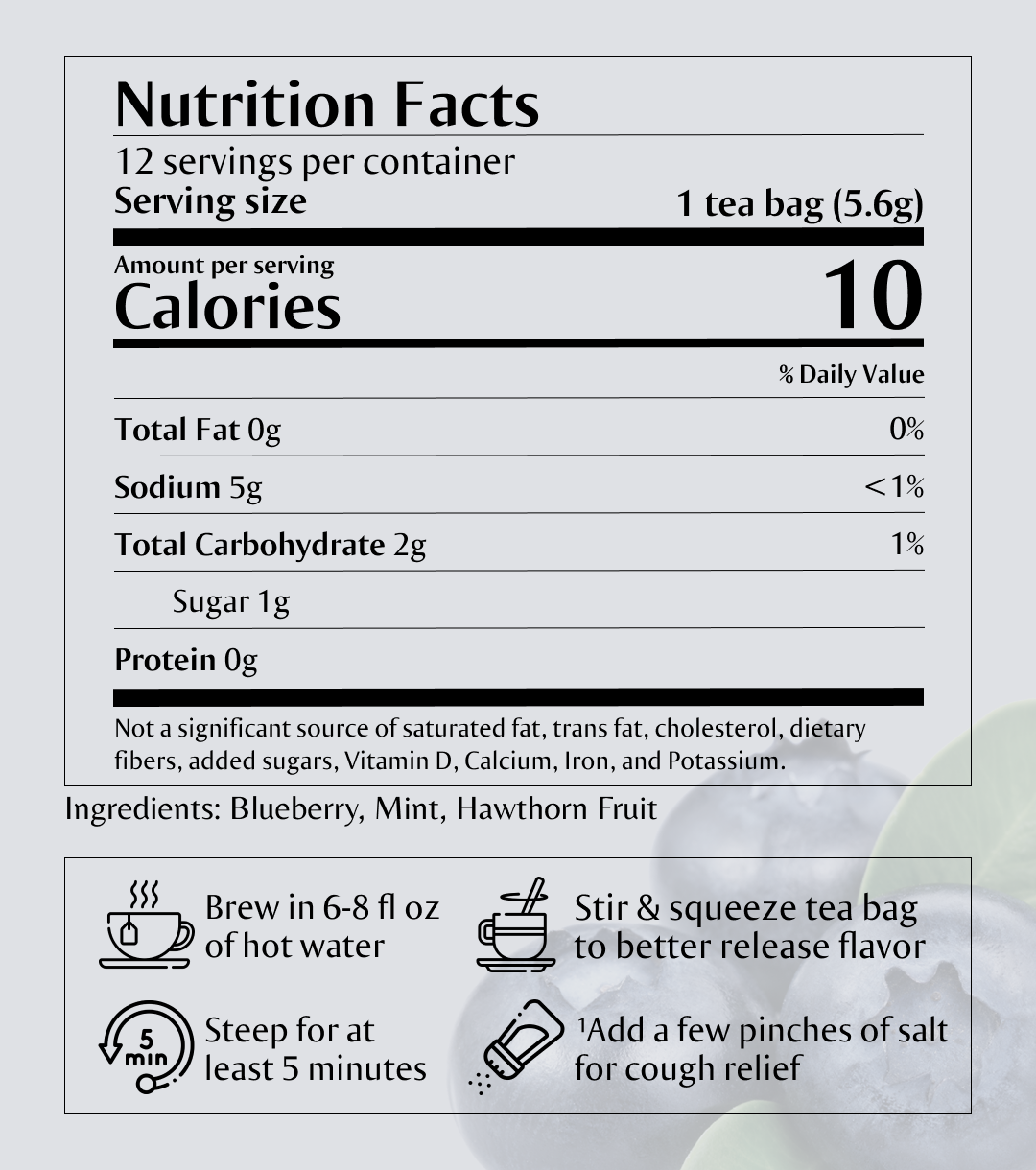 Blueberry: Brain Health*, Nervous System Support*, Cough Relief (when you add salt)*